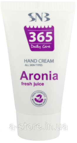 Зволожувальний крем SNB із соком аронії створений спеціально для щоденного догляду за будь-яким типом шкіри. Сік цього плодового дерева зберігає еластичність рук і заспокоює шкіру. До складу також входить натуральна олія аргани, яка живить епідерміс необхідними речовинами з додатковим зволожувальним ефектом. Олія жожоба утримує вологу в шкірі та захищає від негативних зовнішніх чинників, ши та гліцерин пом'якшує руки, роблячи шкіру м'якою та гладкою.